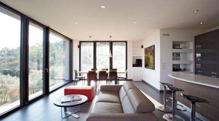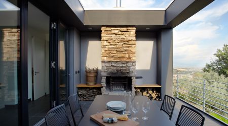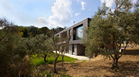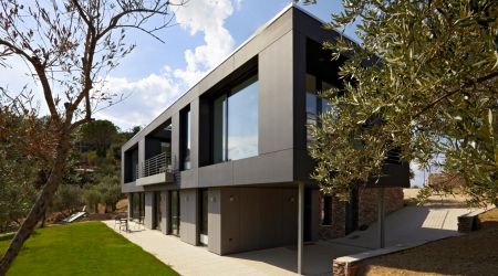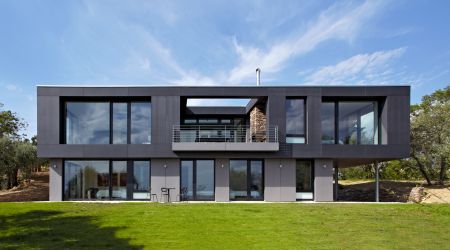 Das frei geplante Passivhaus in Perugia, Italien überzeugt durch die gelungene Balance der Baustoffe Holz und Stein. Auf der einen Seite transportiert die Steinfassade einen traditionellen Baustil, auf der anderen setzen die Zementfaserplatten in Anthrazit moderne und architektonische Design-Akzente.
