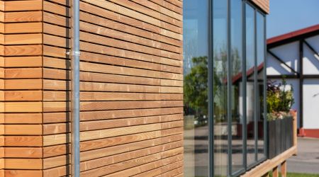 Holzständerbauweise 200 mm mit Holzfaserdämmung + 15 mm DWD Holzwerkstoffplatte