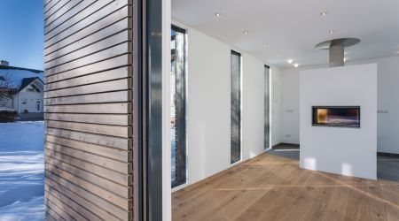 Hinterlüftete horizontale Weißtanne Latten, vorvergraut lasiert