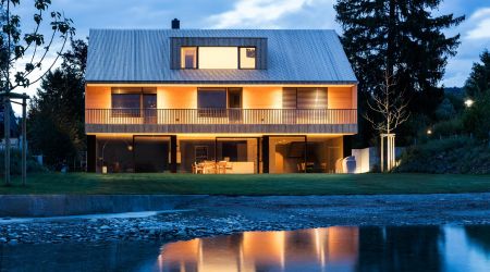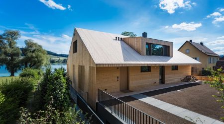 Dieses Wohnhaus am Bodensee ist ein wahrer Traum und gerade deshalb auch einer der Hauptdarsteller in dem Schwarzwälder Imagefilm. In Zusammenarbeit mit den Bauherren wurde das Design des Hauses im Innen- und Außenbereich entwickelt und geplant. Besonders fällt dabei das Holzdach aus Weißtannenlatten ins Auge. Direkter Seezugang und ein Personenaufzug im Haus sorgen für überdurchschnittlichen Komfort.