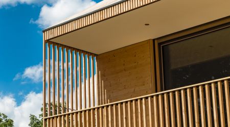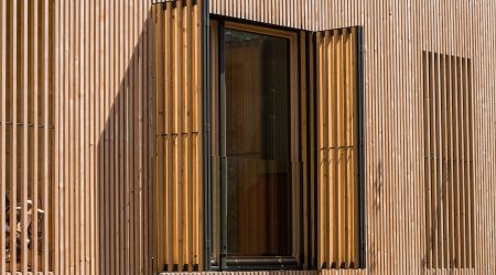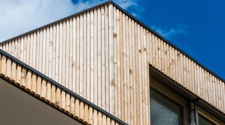 Hinterlüftete vertikale Weißtanne Latten sägerau, 40×40 mm
