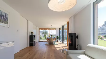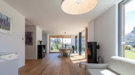 Luft-Wasser-Wärmepumpe mit integrierter Be- und Entlüftungsanlage mit Wärmerückgewinnung, Fußbodenheizung.