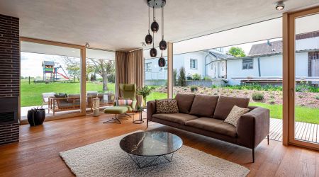In einem kleinen Ort im Schwarzwald zeigt das großzügige Einfamilienwohnhaus, was moderner Design-Holzbau alles möglich macht. Große Fensterflächen, ein raffinierter Schnitt und viele gute Ideen sorgen für ein ausgesprochen großzügiges und lebenswertes Wohnerlebnis.