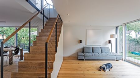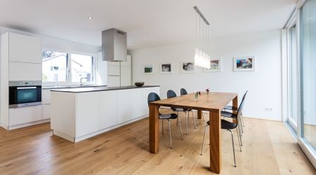 Immer wieder gerne gesehen: ein Haus mit kubischen Elementen und Flachdach. Ein solches, modernes Wohnhaus entstand in Freiburg. Neben zeitgemäßen Baustoffen kamen auch bei der Haustechnik die aktuellsten Technologien zum Einsatz.