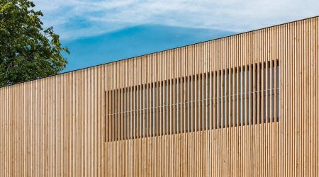 Hinterlüftete vertikale Weißtanne Latten Oberfläche sägerau, 40x40 mm