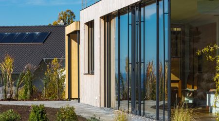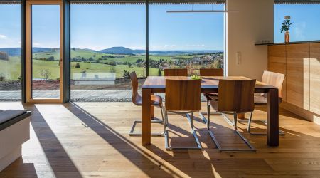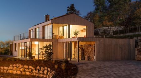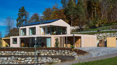 Dieses Objekt findet für zahlreiche Herausforderungen intelligente Lösungen: trotz der steilen Hanglage mit einer Höhendifferenz von 11 Metern war es möglich ein Haus mit herausragendem Design auf nur zwei Geschossen zu realisieren. Große, rahmenlose Verglasungen in Raumhöhe runden das Bild des modernen Zuhauses ab. Auch bei der Haus-, Heizungs- und Lüftungstechnik kommen moderne und effiziente Lösungen zum Einsatz.