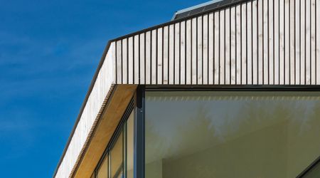 Holzfassade, hinterlüftete vertikale Weißtanne Latten sägerau, 40×40 mm