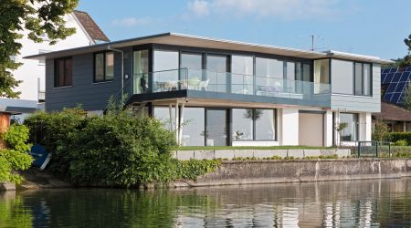 In Hemmenhofen wurde einem bestehenden Haus das Satteldach abgenommen und dafür ein weiteres Stockwerk aufgesetzt. Zusätzlich wurde das Erdgeschoss komplett saniert. Eine planerische und bauliche Höchstleistung und ein überzeugendes Ergebnis.