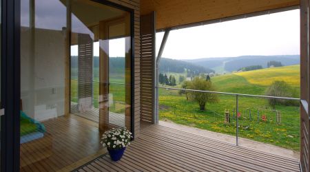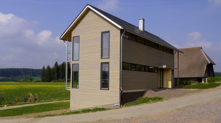In Oberkirnach entstand inmitten von hundertjährigen Höfen dieses moderne Wohnhaus, welches in der Umgebung des Außenbezirkes das erste seiner Art ist. Das ganz aus nachwachsenden Rohstoffen gefertigte Objekt erhielt wurde mit dem bundesweiten HolzbauPlus Preis ausgezeichnet.