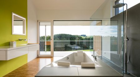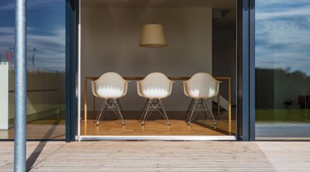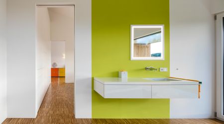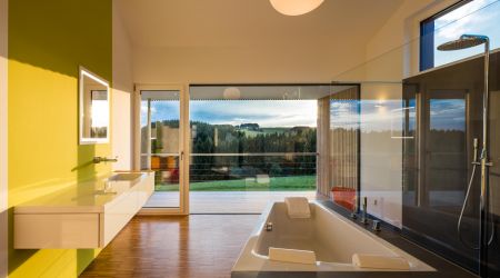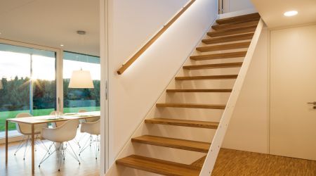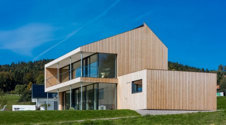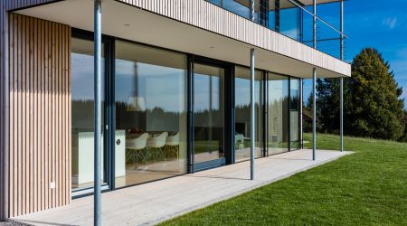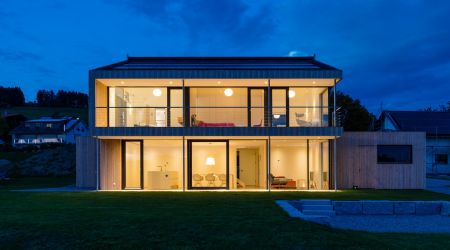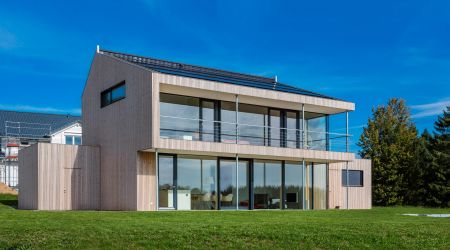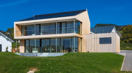 Dieses preisgekrönte Haus setzt in vielerlei Hinsicht neue Maßstäbe. Es wurde im Jahr 2018 zum schönsten deutschen Fertighaus gekürt und überzeugt durch die hohe architektonische Detailqualität. Klare Formen und Linien bestimmen die Fassade des Design-Hauses. Die großzügigen Fensterflächen runden das Gesamtbild ab. Innen sorgen hohe Decken für ein harmonisches Raumgefühl.