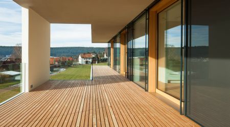 Zementfaserplatten und teilweise weiß gestrichene Flächen.